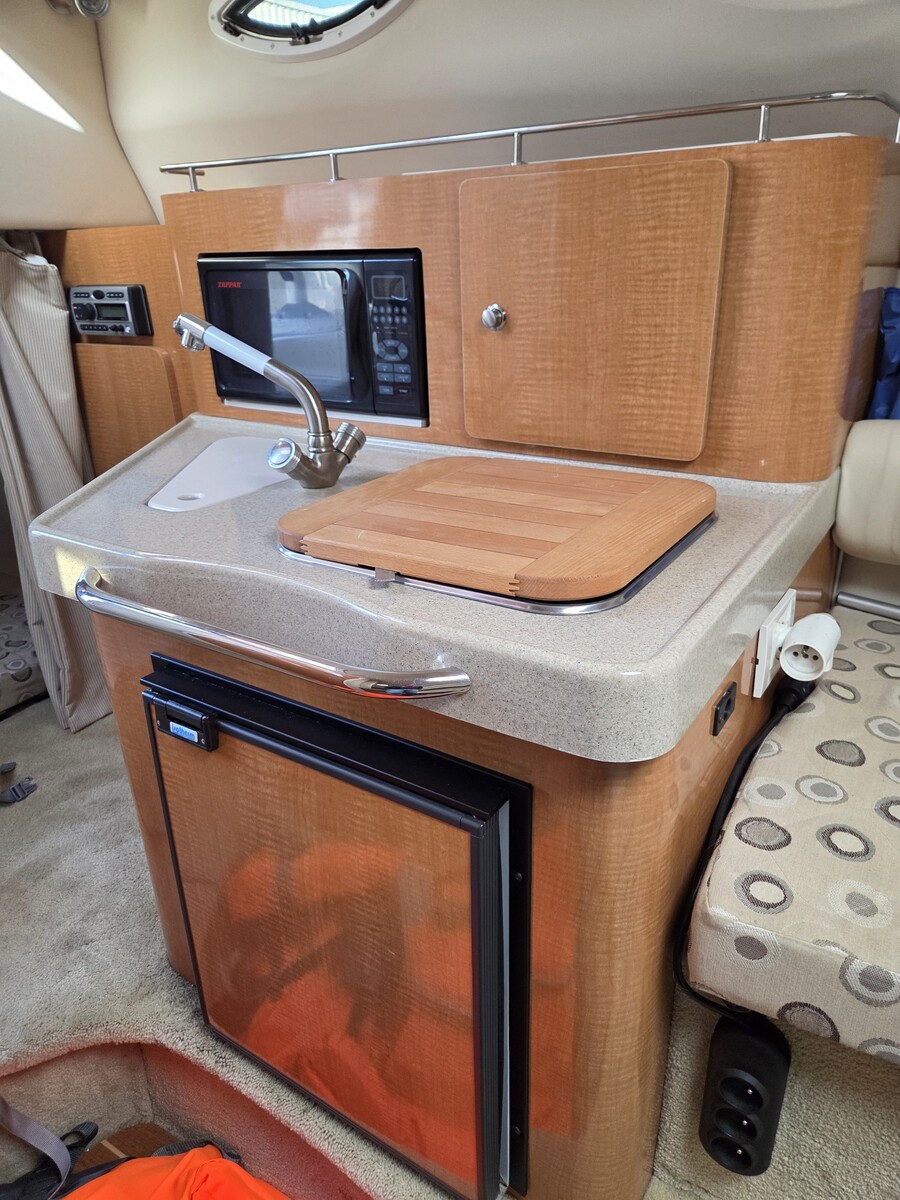 Ongekend ruime boot , ruime slaapvoorziening en keukentje met koelkast en micrigolf onderin de cabine.